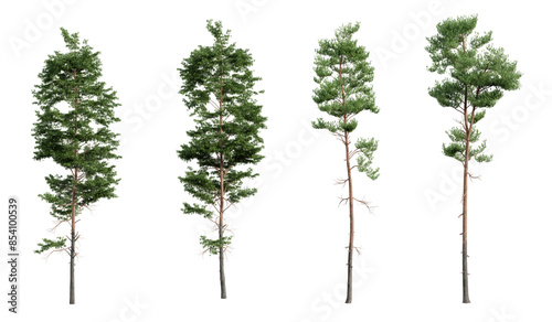 Wall mural : Set of various pine trees isolated on transparent background - 3d render -