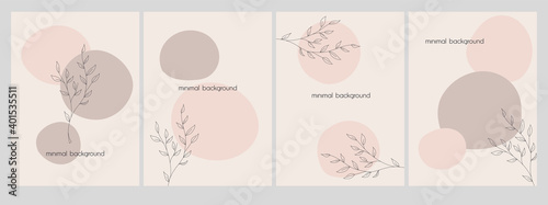 Wall mural set of vector abstract backgrounds templates in minimal style with flowers.