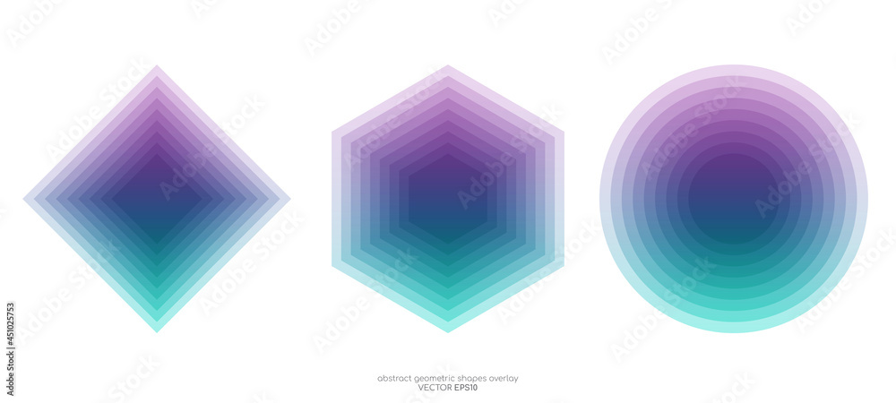 The watermark will not be included on Wall mural.: Set of vector abstract geometric shape square hexagon and circle by colorful pastel gradient transpa