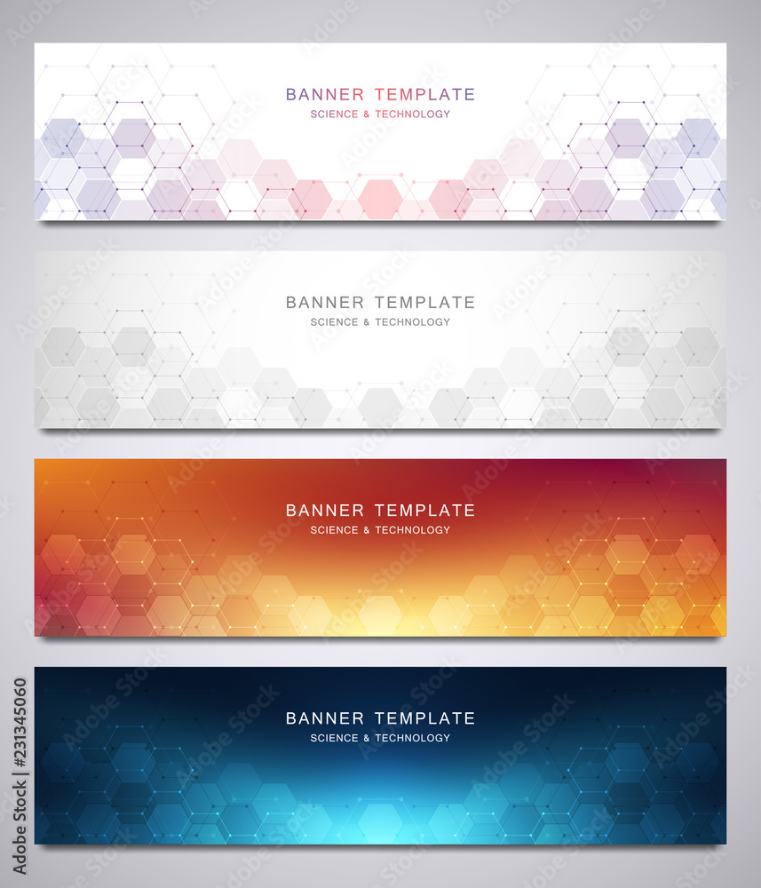 Wall mural set of vector banners and headers for site with medical background and hexagons pattern. abstract ge