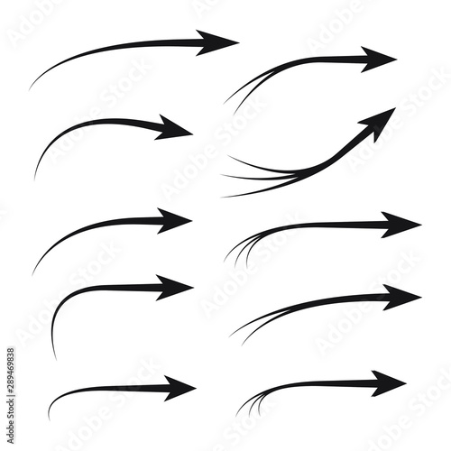Wall mural : Set of vector curved arrows hand drawn - collection of pointers -