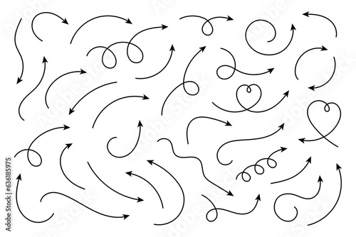 The watermark will not be included on Wall mural.: Set of vector hand drawn curved arrows - collection of pointers - vector illustration -