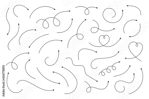 Wall mural set of vector hand drawn curved arrows. collection of pointers. vector illustration.