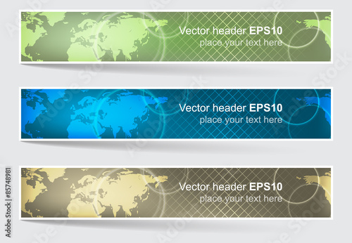 Wall mural set of vector header or banner, world map background - Wall murals Wall mural set of vector header or banner, world map background - Wall murals