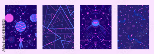 The watermark will not be included on Wall mural.: Set of vector illustrations of abstract celestial bodies - constellations, stars, planets - space univ