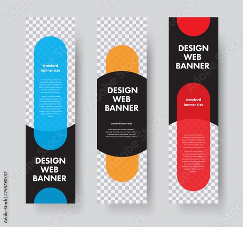 Set of vector vertical web banners with with place for photo and colored rectangles with rounded corWall mural
