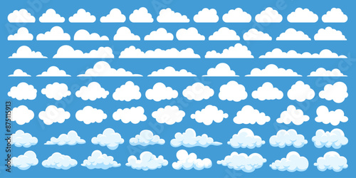 Wall mural set of vector white cloud or web cloud computing technology business icon isolated on blue backgroun - Wall murals Wall mural set of vector white cloud or web cloud computing technology business icon isolated on blue backgroun - Wall murals