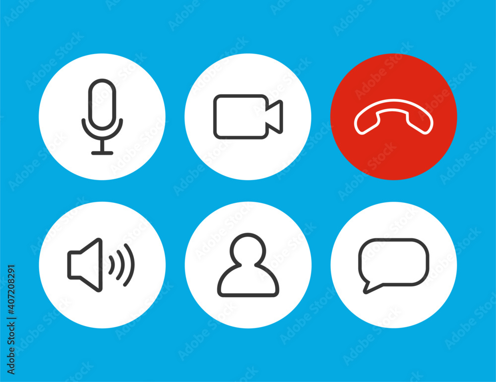 Wall mural set of video call icons. video conference. collections buttons of on-line video chat app, internet t - Wall murals Wall mural set of video call icons. video conference. collections buttons of on-line video chat app, internet t - Wall murals
