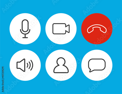 Set of video call icons - video conference - collections buttons of on-line video chat app, internet tWall mural
