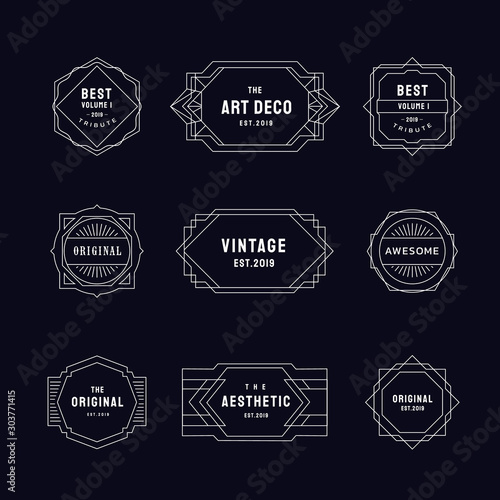 Wall mural set of vintage linear thin line geometric shape art deco retro elements with badge design