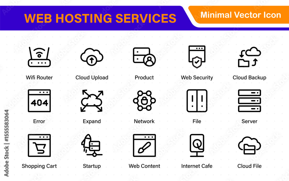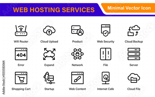 Wall mural set of web hosting and cloud services icons. linear style icon bundle.outline icon collection.
