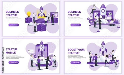 The watermark will not be included on Wall mural.: Set of web page design templates for business start up concept - can use for web banner, poster, info