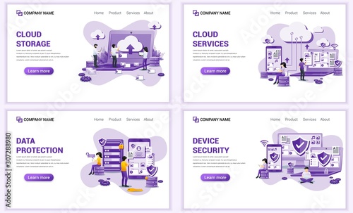 Wall mural set of web page design templates for cloud storage, data security. can use for web banner, poster, i - Wall murals Wall mural set of web page design templates for cloud storage, data security. can use for web banner, poster, i - Wall murals