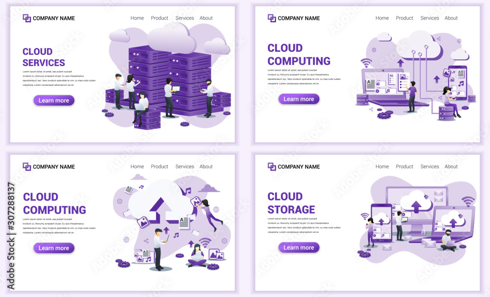 Wall mural : Set of web page design templates for cloud technology, cloud services, data management - can use for