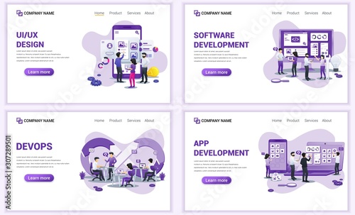 Set of web page design templates for computer programmers, mobile and web app development - can use fWall mural