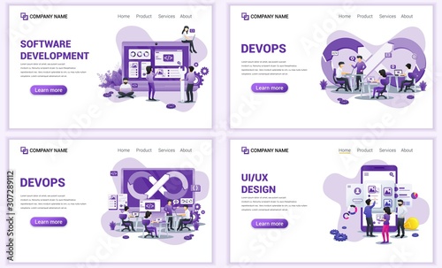 Set of web page design templates for computer programmers, mobile and web app development - can use fWall mural