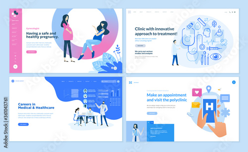 The watermark will not be included on Wall mural.: Set of web page design templates on medicine and health care - vector illustrations for website desig