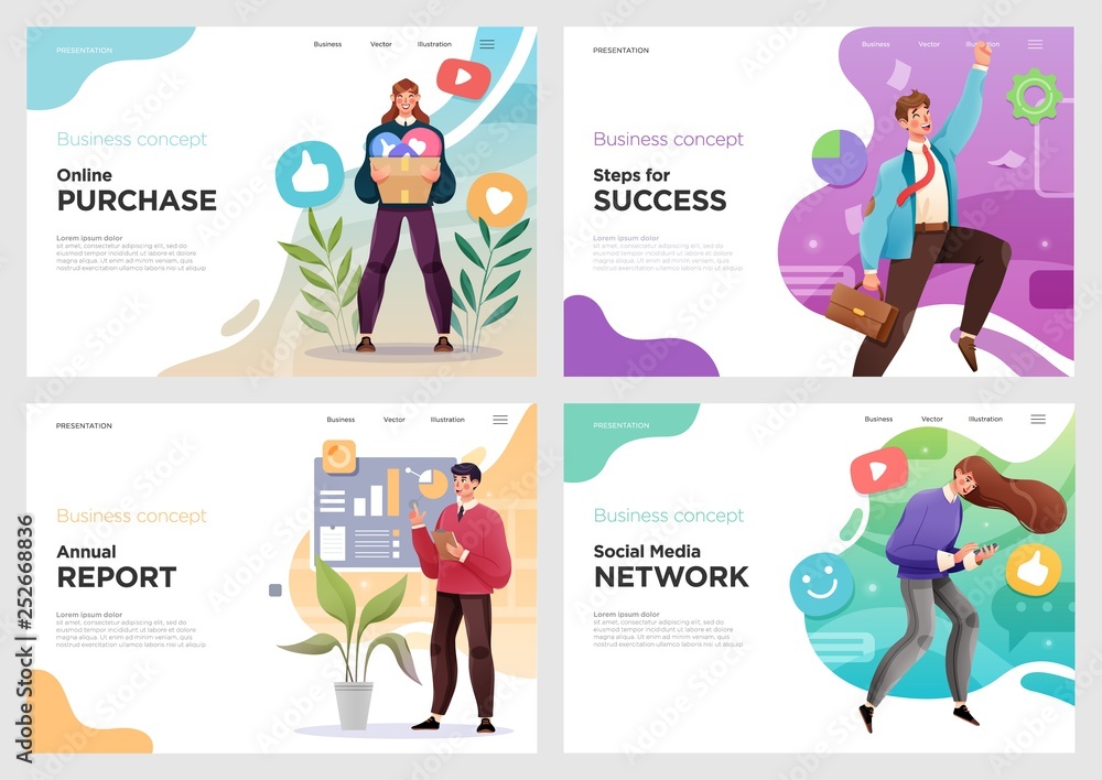 The watermark will not be included on Wall mural.: Set of website template designs - vector illustration concepts of web page design for website or land