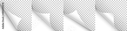 Set of white paper curls - curled page corner with shadow - blank sheet of paper - design element for aWall mural