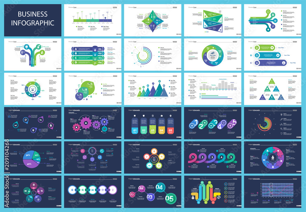 Wall mural set of workflow and strategy concept infographic charts. business diagrams for presentation slide te - Wall murals Wall mural set of workflow and strategy concept infographic charts. business diagrams for presentation slide te - Wall murals