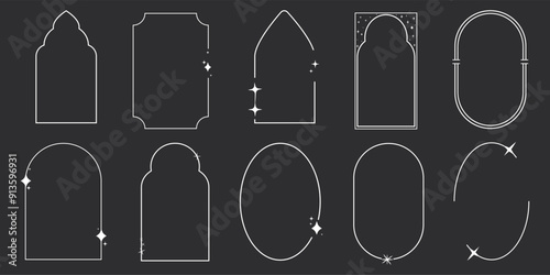 Wall mural set of y2k minimal geometric shapes thin line rings, abstract aesthetic element illustrated for bann - Wall murals Wall mural set of y2k minimal geometric shapes thin line rings, abstract aesthetic element illustrated for bann - Wall murals