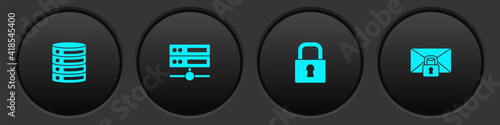 Set Server, Data, Web Hosting, , Lock and Mail message lock password icon - Vector - Wall mural