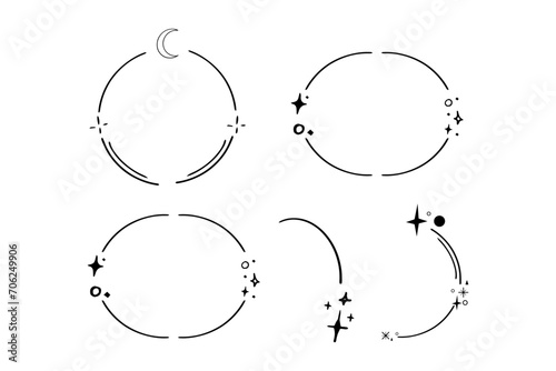 The watermark will not be included on Wall mural.: Set star sparkle silhouette celestial line frames abstract shape borders isolated on white backgroun