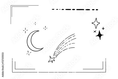 The watermark will not be included on Wall mural.: Set star sparkle silhouette celestial line frames abstract shape borders isolated on white backgroun