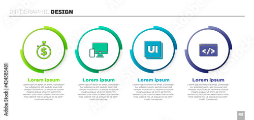 Wall mural : Set time is money, monitor and mobile, ui ux design and front end development - business infographic