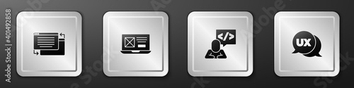 Set ui or ux design, , front end development and icon - silver square button - vector - Wall mural