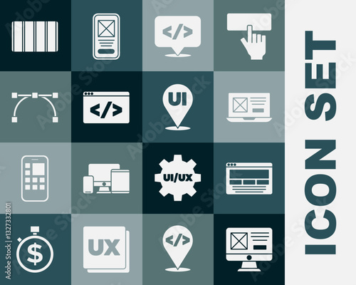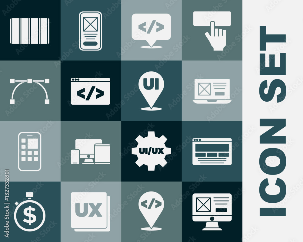 The watermark will not be included on Wall mural.: Set ui or ux design, front end development, bezier curve, color palette guide and icon - vector