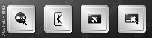 Set ui or ux design, web development, website template and icon - silver square button - vector - Wall mural