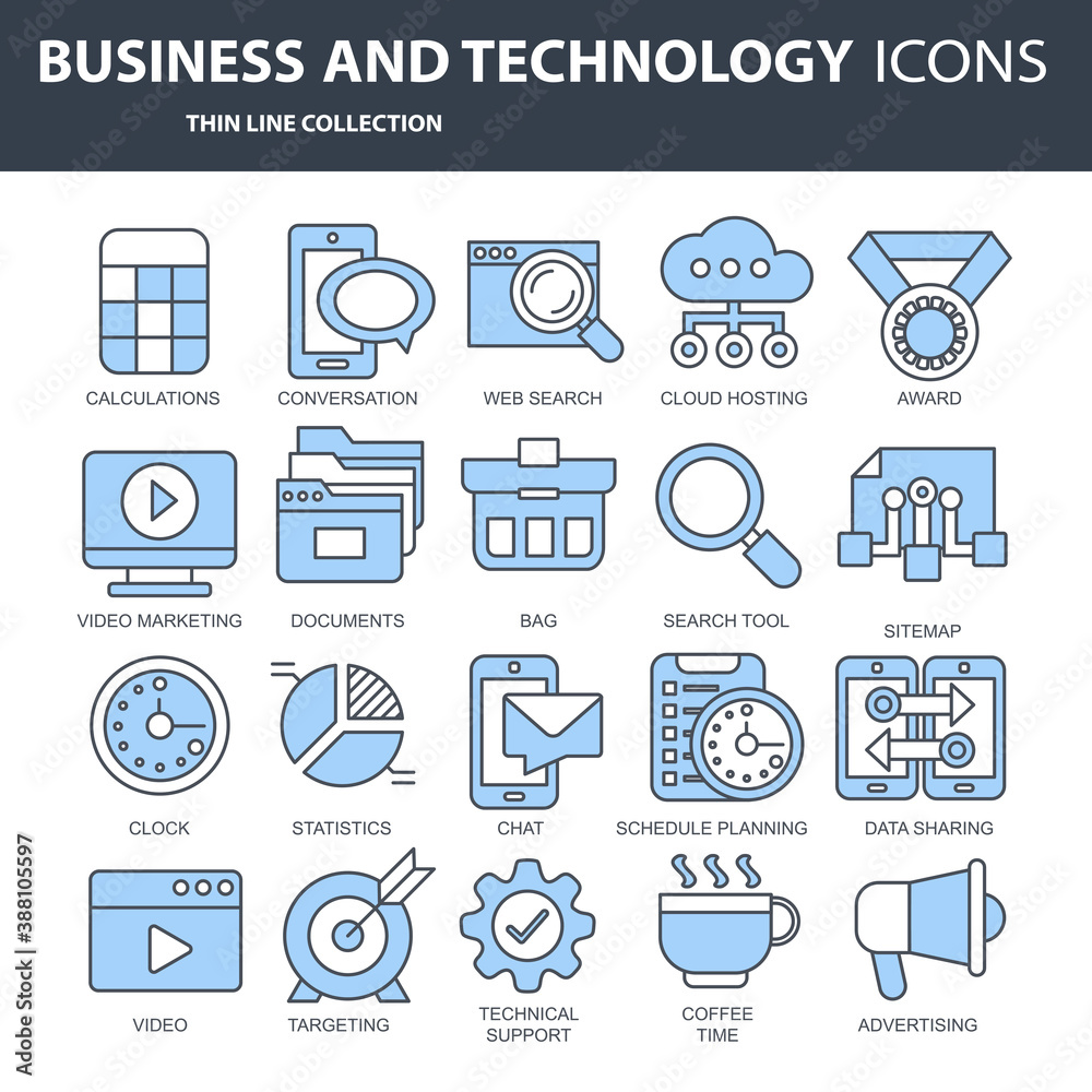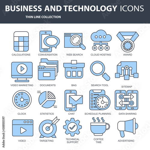 Wall mural set vector icons with elements for mobile concepts and web apps. business and marketing, programming