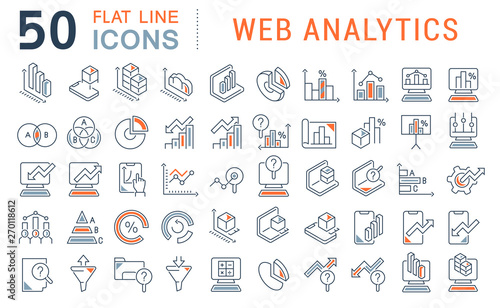 The watermark will not be included on Wall mural.: Set vector line icons of web analytics