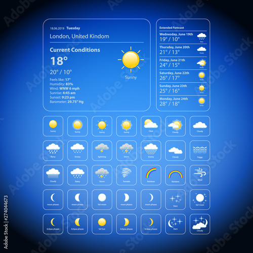 Wall mural : Set weather icons - all icons for weather with sample of use - vector, eps 10 -