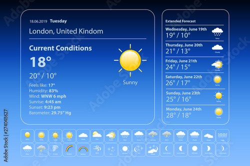 Wall mural : Set weather icons - all icons for weather with sample of use - vector, eps 10 -