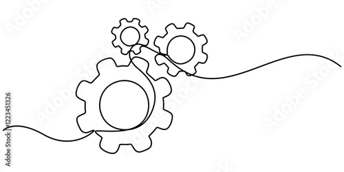 The watermark will not be included on Wall mural.: Setting icon continuous one line drawing vector illustration, continuous one line drawing of setting