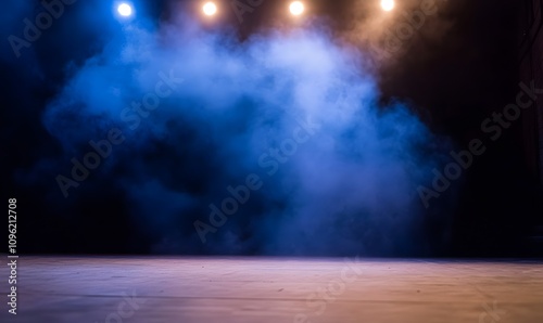 The watermark will not be included on Wall mural.: Setting up a stage without actors illuminated by light and smoke, generative ai