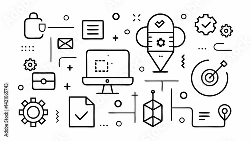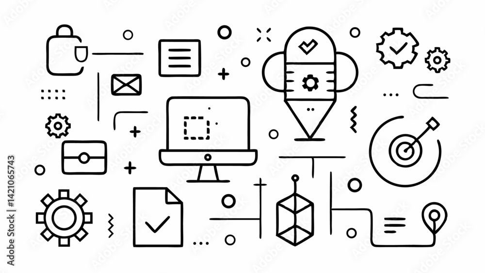 Wall mural setup and configuration icon set in line art style featuring tools and gears perfect for ui ux and s - Wall murals Wall mural setup and configuration icon set in line art style featuring tools and gears perfect for ui ux and s - Wall murals