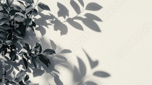 The watermark will not be included on Wall mural.: Shadow of foliage on white background with text space