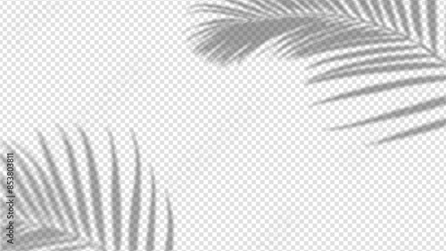 Wall mural : Shadow overlay from a palm tree branch isolated on a transparent background -