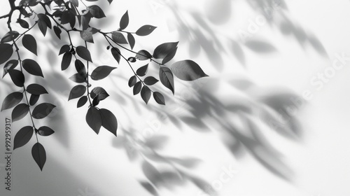 The watermark will not be included on Wall mural.: Shadow texture - abstract design with botany tree branch composition