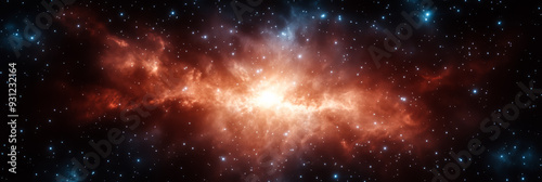 Wall mural shadowy outer space with hints of a bright crimson and gold nebula faintly glowing in the distance s - Wall murals Wall mural shadowy outer space with hints of a bright crimson and gold nebula faintly glowing in the distance s - Wall murals