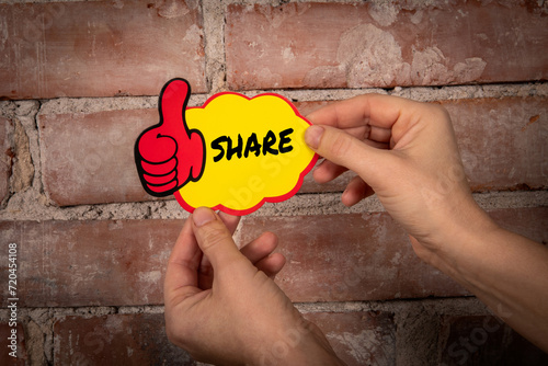 Wall mural share. sticky note with text on a red brick background - Wall murals Wall mural share. sticky note with text on a red brick background - Wall murals