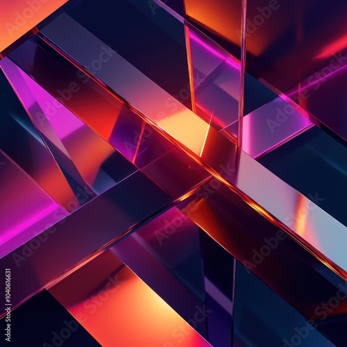 Wall mural : Sharp, angular shapes with neon light reflections and gradient transitions