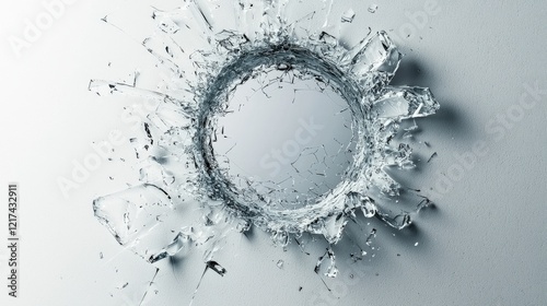 Wall mural : Shattered glass fragment art with circular center on light background and dynamic texture highlighti