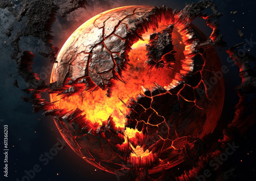Wall mural shattering and exploding of planet earth's molten core . generative ai - Wall murals Wall mural shattering and exploding of planet earth's molten core . generative ai - Wall murals