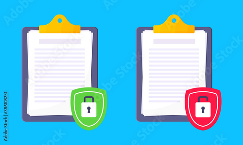 Wall mural shield with padlock on it security protection symbol in the magnifier circle glass set. safety lock,