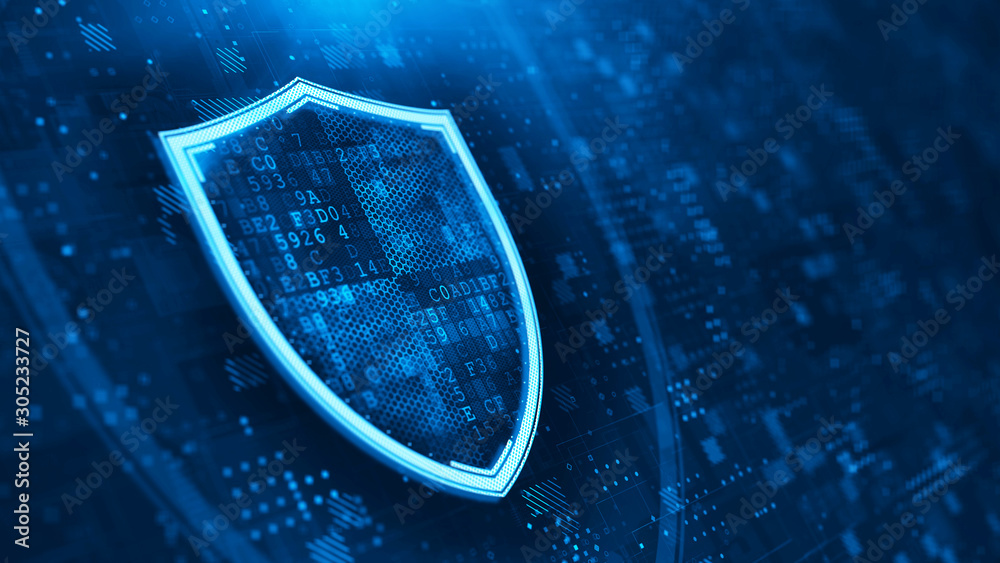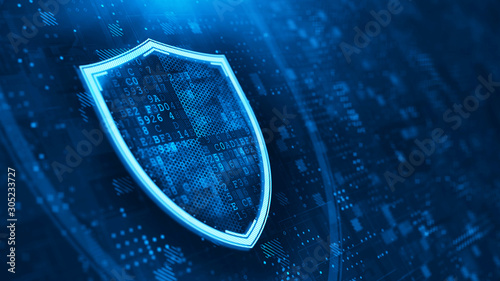 Wall mural shield. abstract wireframe illustration on dark blue. protect and security concept. digital shield o