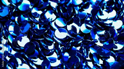 Wall mural : Shimmering blue sequin wave: dynamic light and color movement in closeup